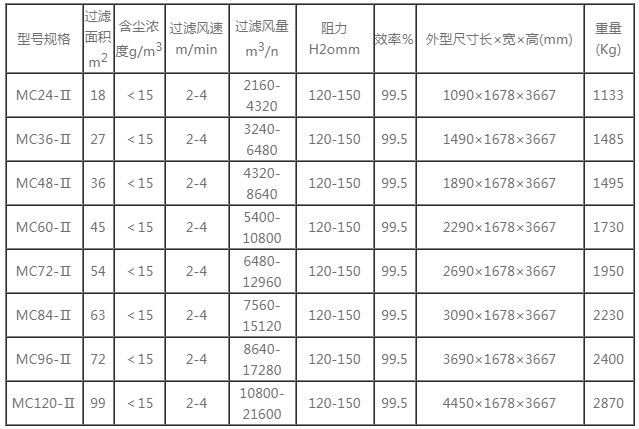 MC-II型單機脈沖除塵器是在MC—Ⅰ型的基礎上,改進的新型脈沖布袋除塵器。為了進一步完善MC—Ⅰ型脈沖除塵器,將原進行了修改,改后的MC—Ⅱ型脈沖袋式除塵器保留了MC—Ⅰ型的凈化效率高,處理氣體能力大,性能穩(wěn)定,操作方便、濾袋壽命長、維修工作量小等優(yōu)點。